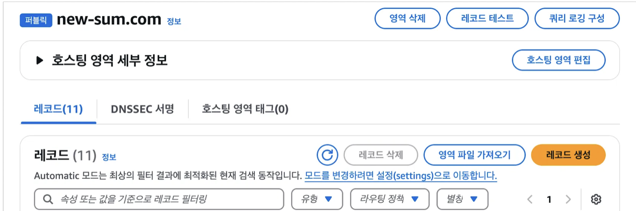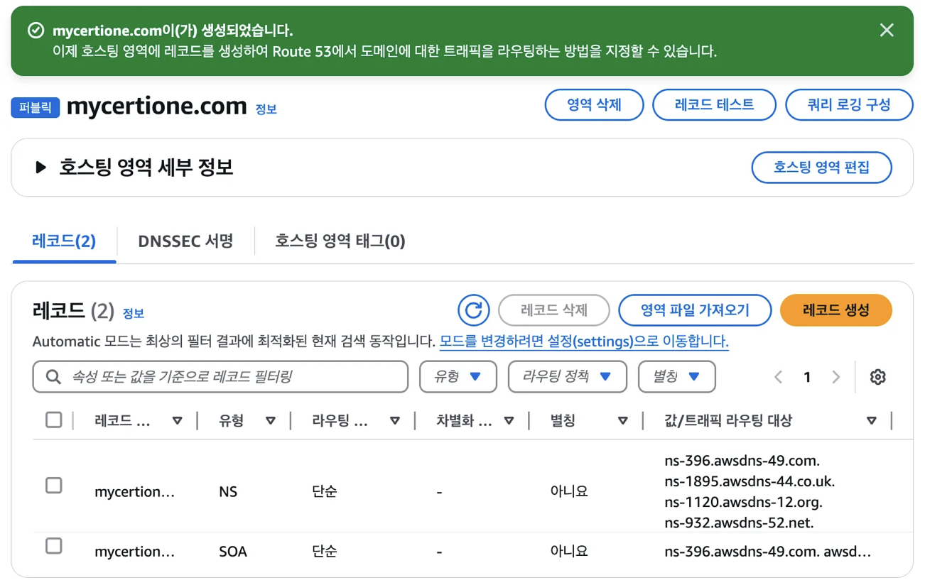 우선 Route53에서 구매한 도메인일 경우입니다.