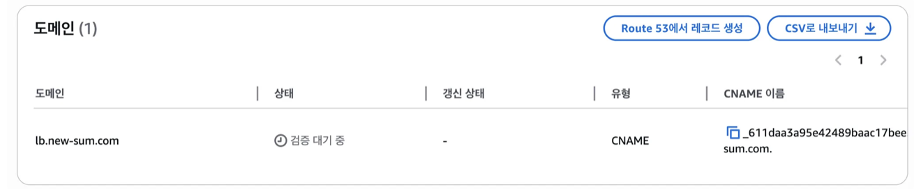 그러면 나오는 도메인의 CNAME을 Route53에 등록을 해줘야하는데
