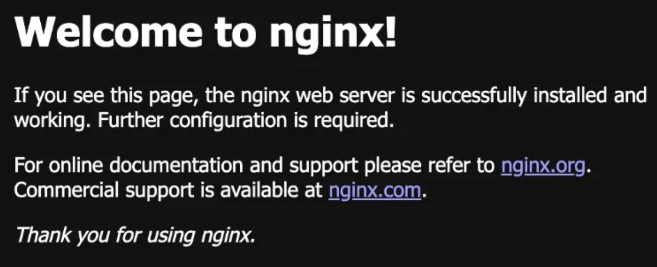 우선 지정된 메세지를 송출하면 된다고 했기 때문에, nginx를 설치하고 화면상에 원하는 글씨를 출력하는 것으로 생각하고 진행하였습니다.