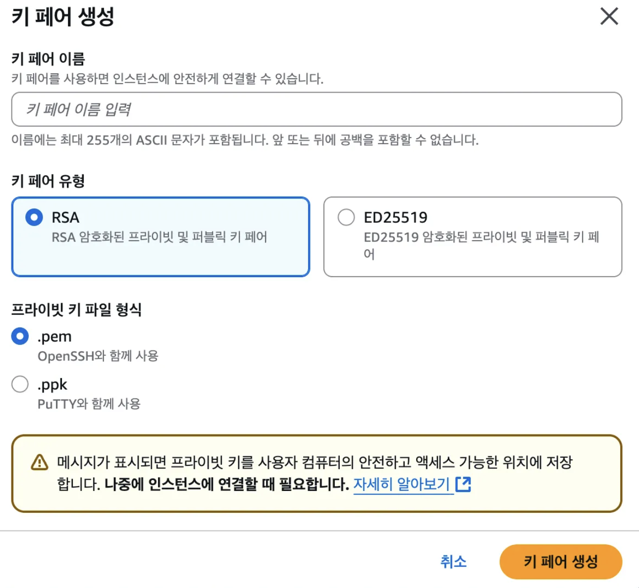 우리는 EC2를 만들 때 키 페어를 생성합니다.
